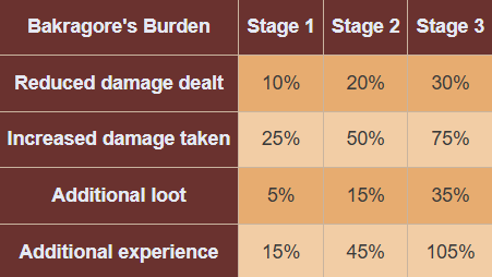 Each sacrifice will increase the impact of Bakragore's Burden, raising both the difficulty and the rewards of the team's next fight against Bakragore. There are four stages, one for each essence sacrificed, additionally, there will be one more echo of bosses essence used inside the room with the Bakragore.